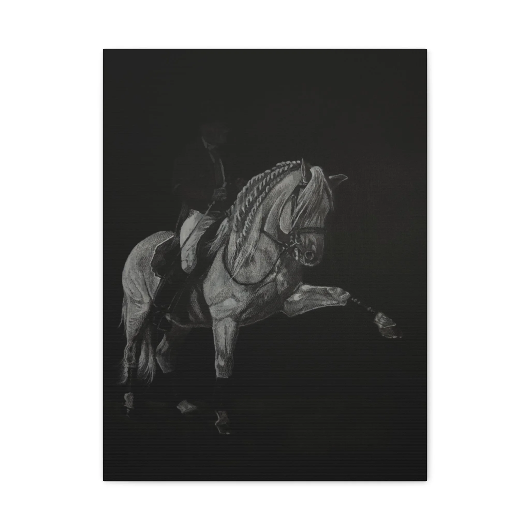A quiet moment of discipline and grace, captured between movement and stillness. Inspired by the classical tradition of the Lipizzaner stallions, this piece reflects the strength, restraint, and refinement that define true horsemanship. Emerging from shadow, the horse carries both power and composure—an embodiment of elegance held in perfect control.